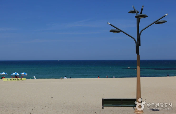동해안 최대 해변으로 유명하며, 강문동, 안현동에 있고 시내에서 북으로 6km, 경포대에서 1km되는 곳에 동해의 창파를 가득 담고 펼쳐진 명사오리(明沙五里)이다. 모두를 삼키기라도 하려는 듯 밀려오는 파도, 이를 쓸어 안은 길이1.8km, 면적1.44㎢의 하얀 모래밭과, 시끄러운 일상을 조용히 차단하는 울창한 송림병풍의 조화가 해변 특유의 아름다움을 자아낸다. (자료출처 : 대한민국 구석구석 - korean.visitkorea.or.kr)